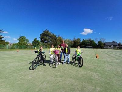 12 maja 2025 r. w Publicznej Szkole Podstawowej w Ryczywole odbył się praktyczny egzamin na kartę rowerową. Uczniowie przystąpili do sprawdzianu umiejętności jazdy na rowerze. Egzamin przeprowadzono na boisku szkolnym, gdzie przygotowano specjalny tor przeszkód umożliwiający ocenę techniki jazdy, znajomości przepisów ruchu drogowego oraz umiejętności bezpiecznego poruszania się po drodze.