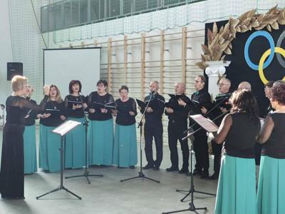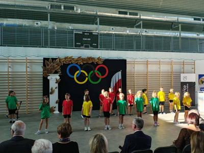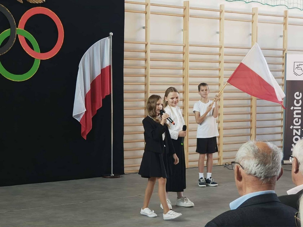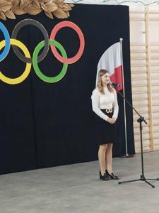 Przed nami zaprezentowały się również nasze uczennice – Ewelina Wójcik oraz Marcelina Banachowicz, uczęszczająca również do szkoły Muzycznej I stopnia im. Wojciecha Kilara w Kozienicach, które zaśpiewały utwór zespołu Mała Armia Janosika pod tytułem „Walczymy do końca”. Sport kojarzy się oczywiście z aktywnością fizyczną, był jednak również często źródłem poetyckiego natchnienia. Jako ostatnia przed publicznością zaprezentowała się finalistka XLII Małego Konkursu Recytatorskiego, Hanna Strzelczyk, w wierszu „Oda do sportu” Pierre’a de Coubertin, twórcy nowożytnego ruchu olimpijskiego.