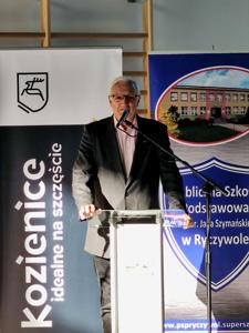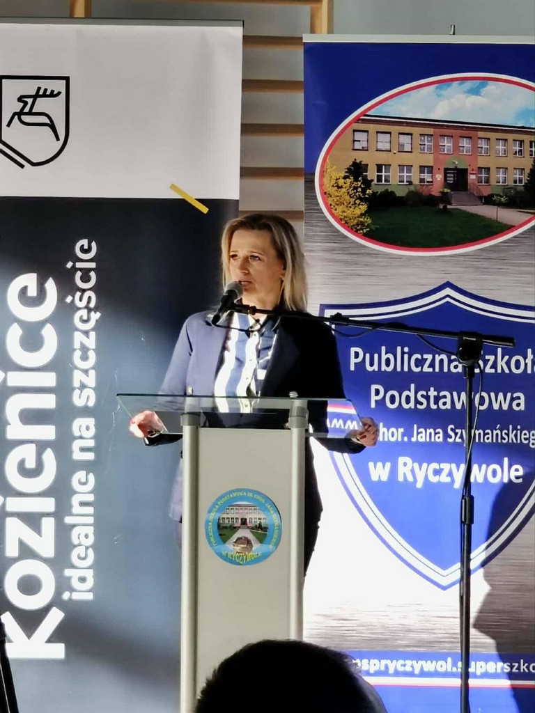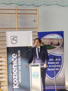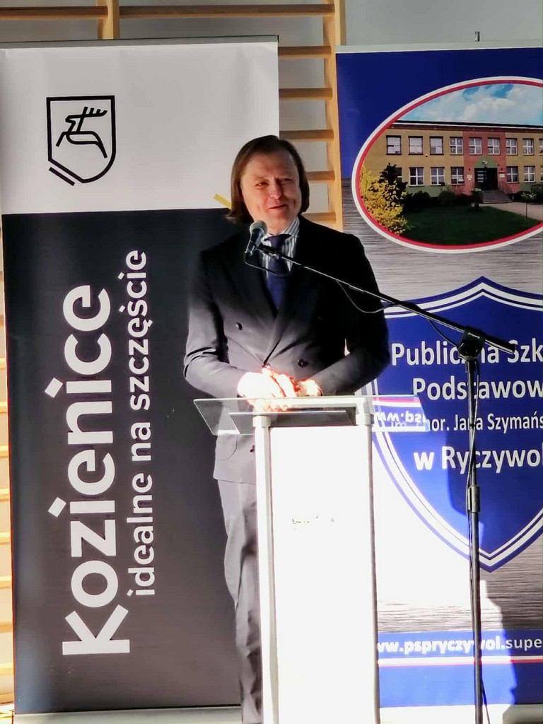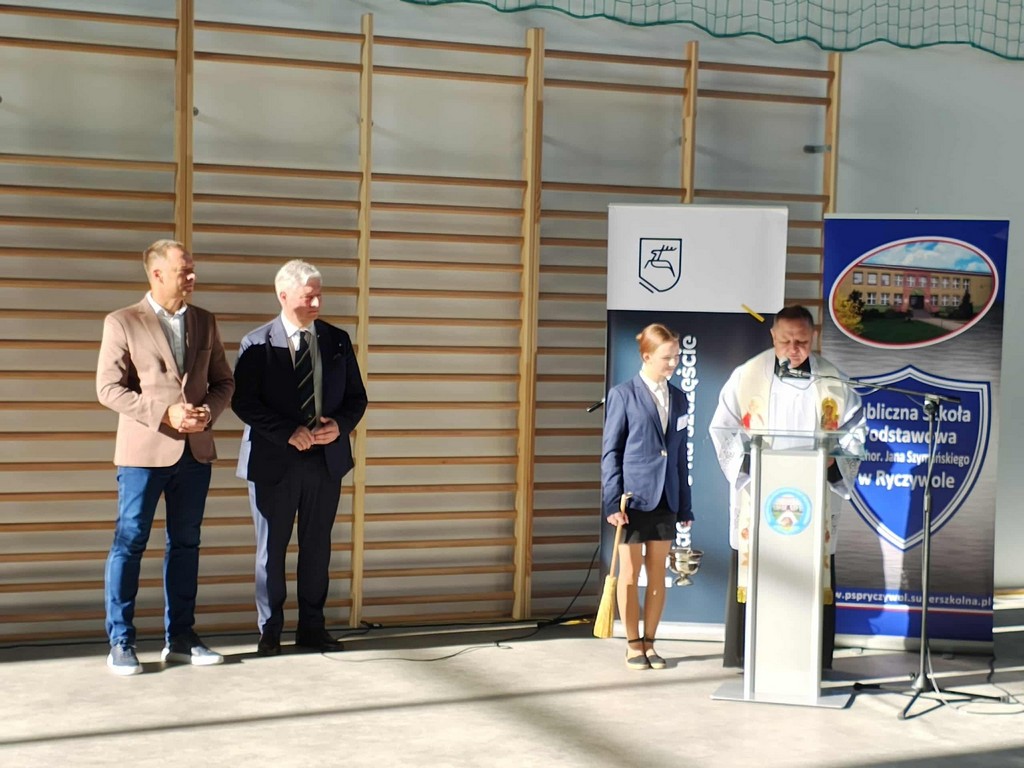 Następnie odbyło się uroczyste przecięcie wstęgi przez Pana Mariusza Prawdę – Burmistrza Gminy Kozienice, Pana Krzysztofa Zająca – Przewodniczącego Rady Miejskiej w Kozienicach, Pana Piotra Borysa - Sekretarza Stanu Wiceministra Ministerstwa Sportu i Turystyki, Pana Wojewodę Mazowieckiego – Pana Mariusza Frankowskiego, Pana Patryka Fajdka – Wicewojewodę Mazowieckiego, Pana Jerzego Pietrzyka – Wiceprezesa Warszawsko-Mazowieckiej Rady Olimpijskiej, Pana Bohdana Sas-Jaworskiego – olimpijczyka, Pana Edwarda Skorka – olimpijczyka, Panią Agnieszkę Miżejewską – Dyrektor P:ublicznej Szkoły Podstawowej im. chor. Jana Szymańskiego w Ryczywole, Panią Katarzynę Balcerzak – Przewodniczącą Rady Rodziców Publicznej Szkoły Podstawowej im. chor. Jana Szymańskiego w Ryczywole, Adama Kowalczyka – przedstawiciela Samorządu Uczniowskiego, Pana Sylwestra Trzosa – Wykonawcę.