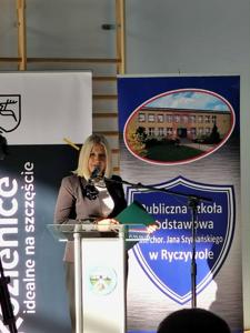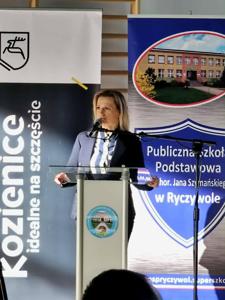 Po wprowadzeniu sztandaru i odśpiewaniu hymnu państwowego rozpoczęła się projekcja filmu poświęconego historii powstania hali sportowej „Olimpia”. Film został zrealizowany we współpracy z telewizją lokalną Kronika Kozienicka. Następnie głos zabrała dyrektor szkoły – Agnieszka Miżejewska, która w swoim przemówieniu przypomniała m.in. historię powstania nowoczesnej hali sportowej oraz podziękowała wszystkim osobom, dzięki którym hala została wybudowana. Głos zabrali również Burmistrz Gminy Kozienice – Mariusz Prawda, Przewodniczący Rady Miejskiej w Kozienicach – Krzysztof Zając, Sekretarz Stanu Wiceminister Ministerstwa Sportu i Turystyki – Piotr Borys, Wojewoda Mazowiecki – Mariusz Frankowski, Wiceprezes Warszawsko-Mazowieckiej Rady Olimpijskiej, olimpijczyk – Jerzy Pietrzyk, Starosta Powiatu Kozienickiego – Krzysztof Wolski, Radni Rady Miejskiej w Kozienicach – Jerzy Wach oraz Piotr Kozłowski, Prezes Stowarzyszenia Renka – Renata Wołos, Zastępca Burmistrza Gminy Kozienice ds. Społecznych oraz były Dyrektor szkoły – Robert Boryczka Wiceprezes Związku Nauczycielstwa Polskiego oddział w Kozienicach – Renata Domagała, Wiceprezes Związku NSZZ Solidarność oddział Kozienice – Monika Kultys, Przewodnicząca Rady Rodziców Publicznej Szkoły Podstawowej im.chor. Jana Szymańskiego w Ryczywole – Katarzyna Balcerzak, przedstawiciel Samorządu Uczniowskiego – Adam Kowalczyk. Wszyscy prelegenci w swoich przemówieniach zawarli podziękowania dla wszystkich zaangażowanych osób, podkreślili znaczenie sportu i nowej inwestycji dla społeczności, a także życzyli sukcesów sportowych i radości ze wspólnego korzystania z obiektu.