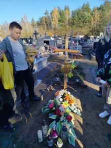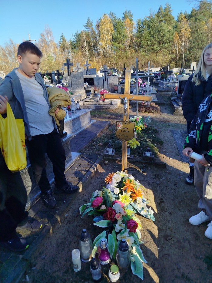 Kolejno wybrali się na grób nauczyciela zza Wisły, nauczyciela uczącego kiedyś w naszej szkole. Znalazł się również czas, aby odwiedzić groby swoich bliskich. Spacer na cmentarz był dla uczniów ważną i wzruszającą lekcją szacunku, pamięci i refleksji nad przemijaniem.