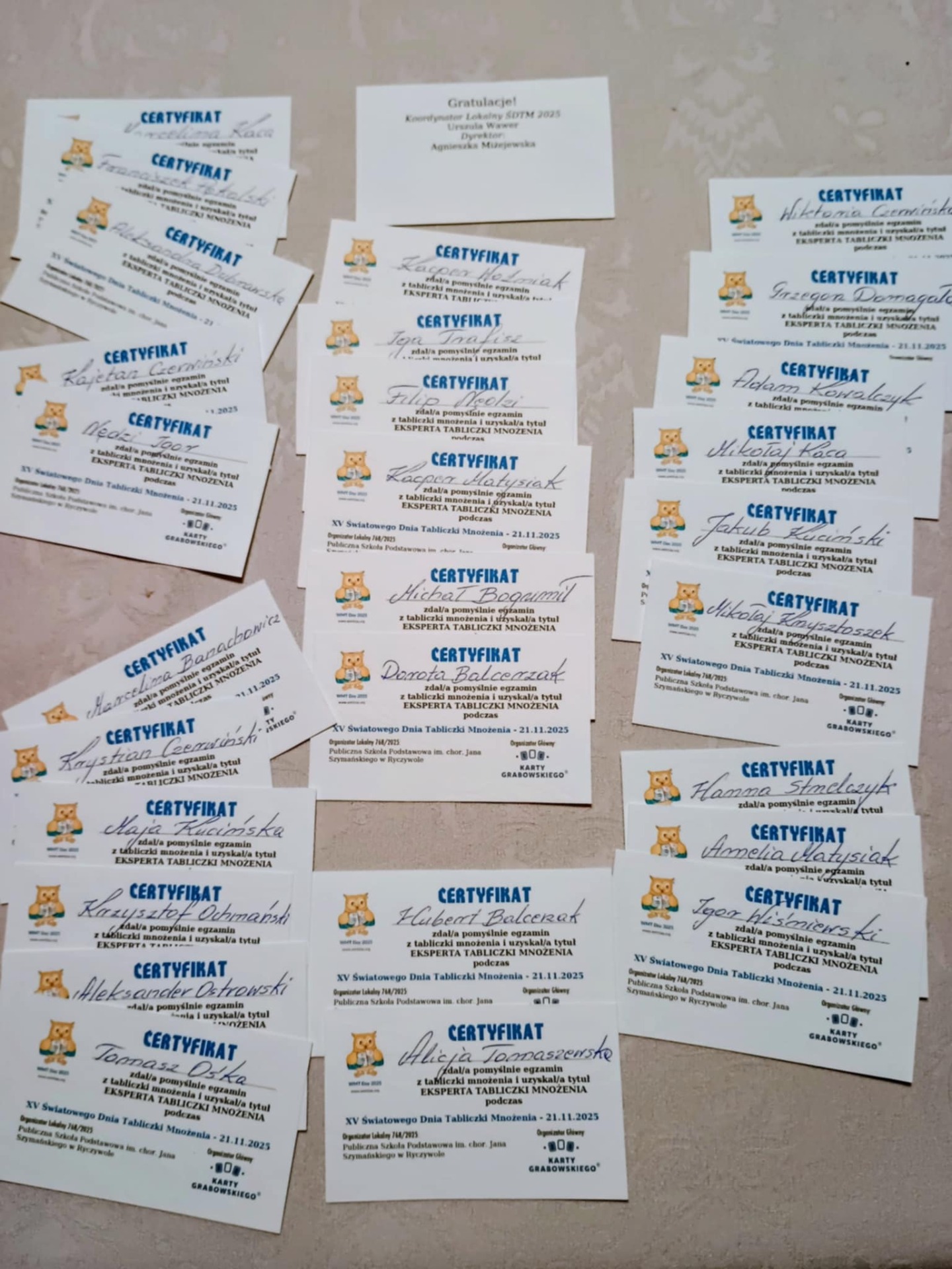 Można było sprawdzić swoje umiejętności. Wydarzenie było okazją do promowania pozytywnych postaw wobec nauki i zachęcania do systematycznego powtarzania tabliczki mnożenia. W klasach III – VIII uczniowie mogli zdobyć tytuł mistrza. Ci, którzy bezbłędnie poradzili sobie z zadaniami, otrzymają Certyfikat Mistrza Tabliczki Mnożenia, potwierdzający ich świetną znajomość działań. Gratulujemy wszystkim uczestnikom.