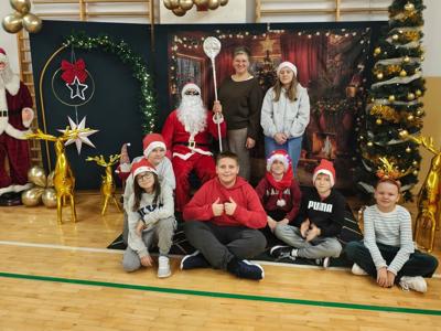 O słodkim upominku tego dnia pamiętał również Samorząd Uczniowski. Dziękujemy Mikołajowi i pani Mikołajowej za przybycie, a mamom naszych dzieci za przygotowanie magicznej scenerii świątecznej🎄🌟.