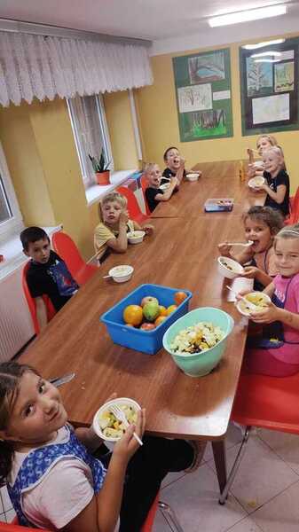 08 października 2024 Aktualności Witaminki, witaminki dla chłopczyka i dziewczynki 💪🍇🍎🍐 Owoce to nie tylko smaczna przekąska, ale również bomba witaminowa. Przekonały się o tym dzieci z oddziału zerowego robiąc samodzielnie sałatkę owocową🍎🍏🍐🍌🍇🍊 Czytaj więcej