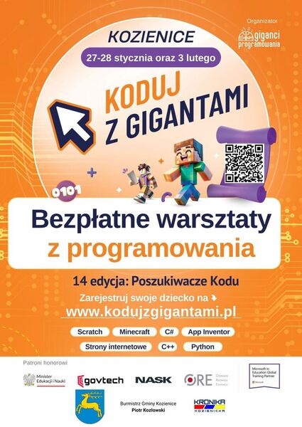 19 stycznia 2024 Aktualności KODUJ Z GIGANTAMI Warsztaty programowania Koduj z Gigantami za darmo już startują! Zapisz się nainfo.kodujzgigantami.pl/szkoly—Post Facebook/Strona Internetowa:Nasza szkoła wspiera 14. edycję akcji Koduj z Gigantami... Czytaj więcej